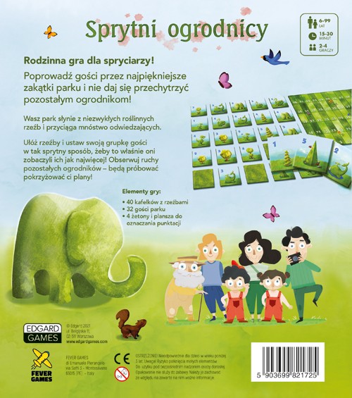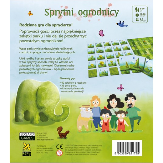 Sprytni Ogrodnicy to rodzinna gra, w której gracze starają się ustawić swoich gości tak, aby zapewnić im jak najlepszy widok na niezwykłe, roślinne rzeźby w ogrodzie.