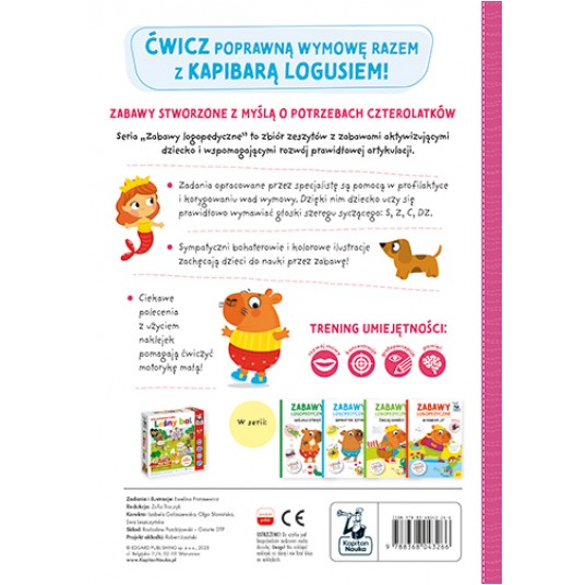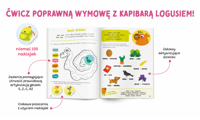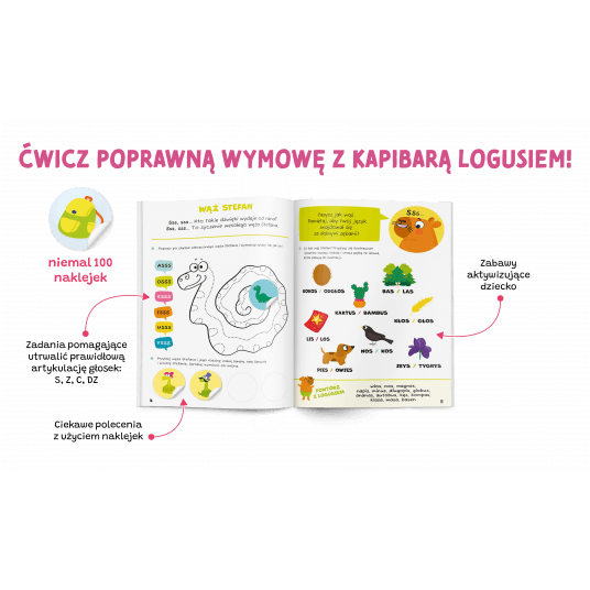 Zbiór zabaw z Logusiem pomoże doskonalić i utrwalić prawidłową artykulację głosek: S, Z, C, DZ. Wykonywanie zadań z książeczki to forma nauki, która sprawia dzieciom radość!