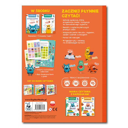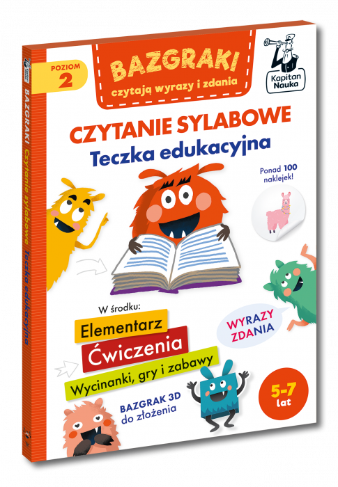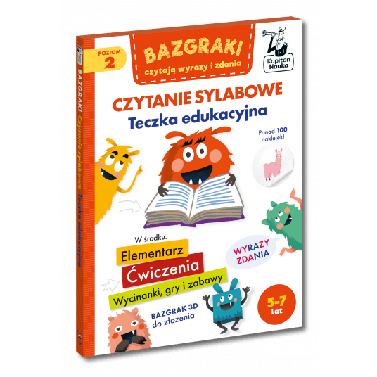 Teczka przeznaczona jest dla dzieci, które znają wszystkie litery i potrafią czytać sylabami pierwsze wyrazy. Rosnący poziom trudności zabaw zachęca do ćwiczeń i do odczytywania napisów w najbliższym otoczeniu. Dzięki urozmaiconym zabawom dzieci w mig opanują czytanie trudniejszych wyrazów i zdań.
